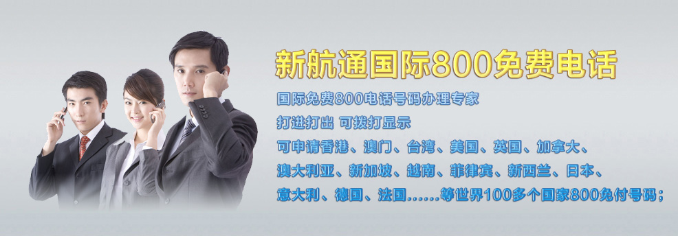 “免費800電話”是由國際電訊聯盟推出的一項主叫免費,被叫付費的一款電信增值服務;也就是客戶撥打該電話,完全不用支付任何費用,該費用由該電 話所有者的企業支付;其目的就是給您企業的客戶提供更好的、更方便的、更加優質的服務;有效留住現有客戶的同時,更好的挖掘企業的潛力客戶。